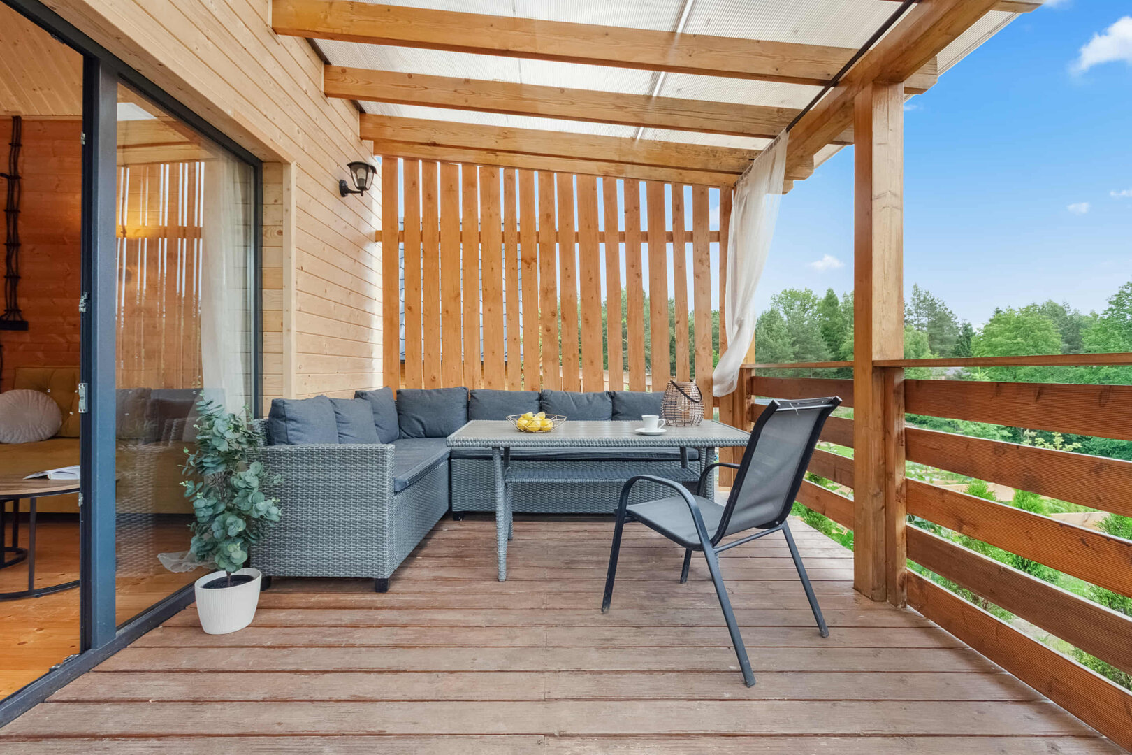 Każdy Domek jest przygotowany dla max. 6 osób i ma ok.55m2 plus taras wyposażony w wygodną sofę rattanową z dużym stołem. Parking w cenie oraz możliwość ładowania samochodów elektrycznych za dodatkową opłatą.